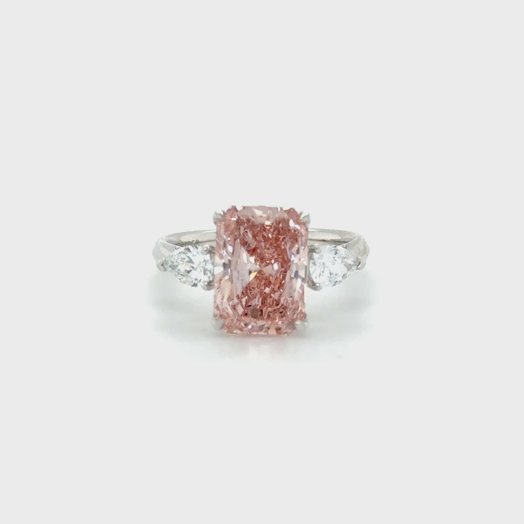 The ‘Isabella’ Engagement Ring is a breathtaking symbol of love and sophistication. Its 4.01ct fancy vivid cushion-cut lab-grown diamond center radiates exceptional brilliance and color, complemented by 0.50ct of pear-shaped side stones (0.25ct each) for a sparkling, feminine glow.