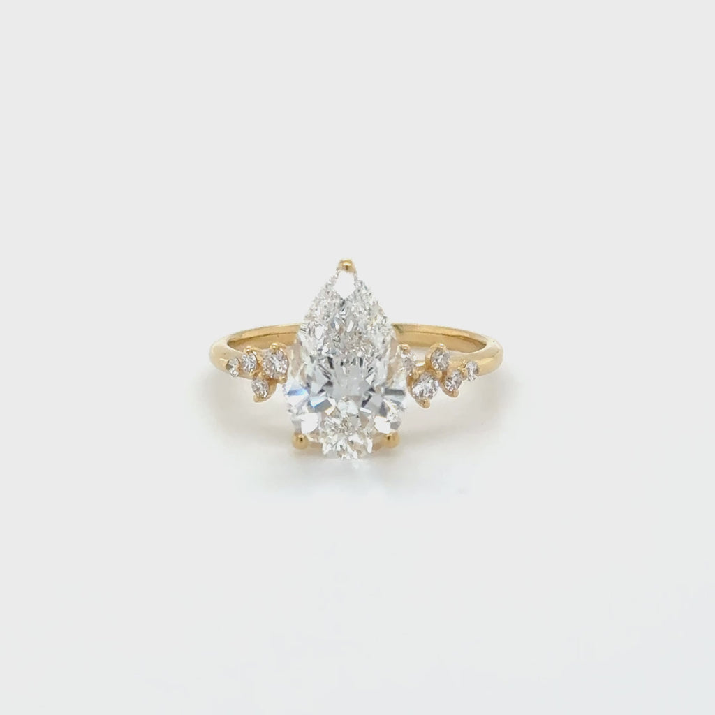'Isolde' – 2.50ct Pear shaped Engagement Ring with Side Stones | 18K Yellow Gold
