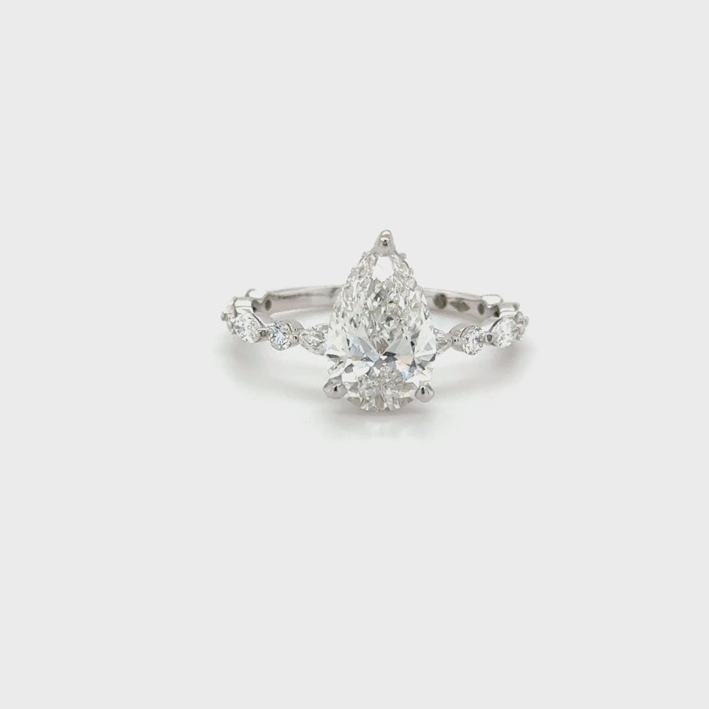 Setting Style: Pear-Shaped Center with Hidden Halo and Side Stones